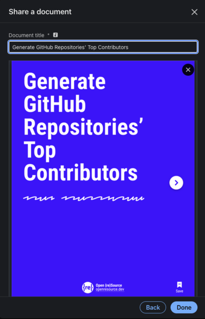 Section titled “How LinkedIn carousels work”Just for those who are not familiar with LinkedIn carousels, they are a series of images or slides that you can swipe through. They are a great way to share information in a visually appealing format. You can use them to showcase your open-source project, share tips, or even tell a story.